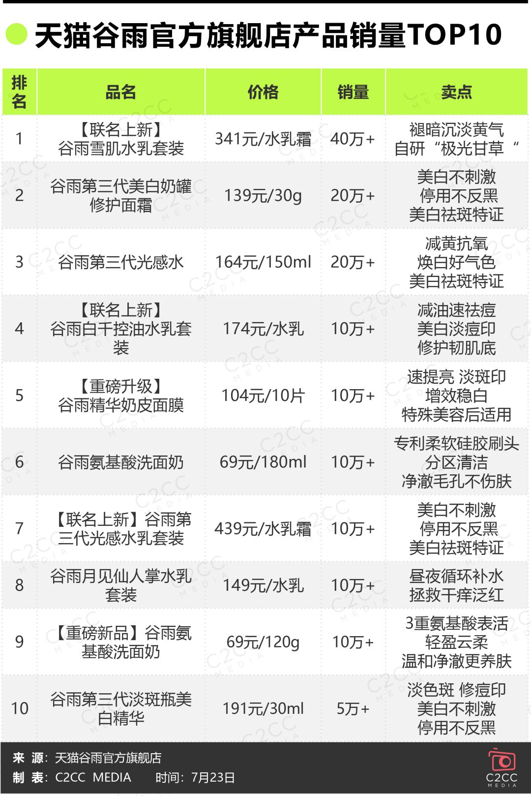 市场数据印证了谷雨的赛道正确性以及爆款实力。品牌成立后,推出的极光甘草美白系列产品持续热卖。